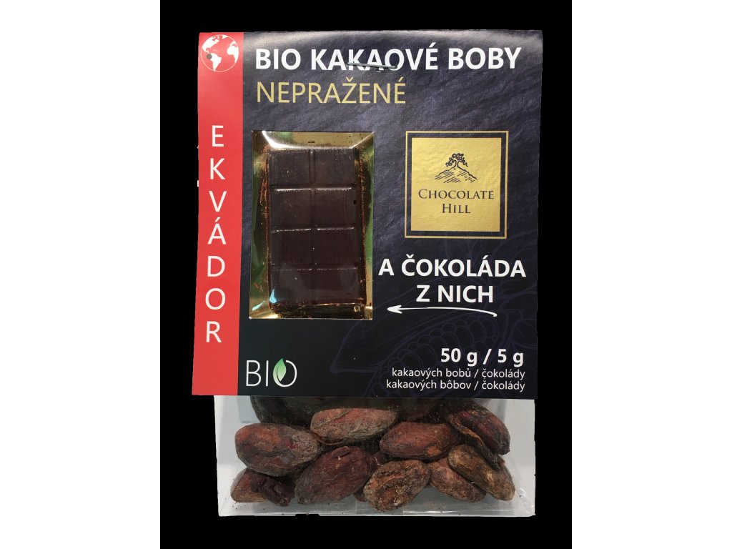 Nepražené kakaové boby Chocolate Hill Ekvádor Raw Bio + miničokoládka z nich vyrobená