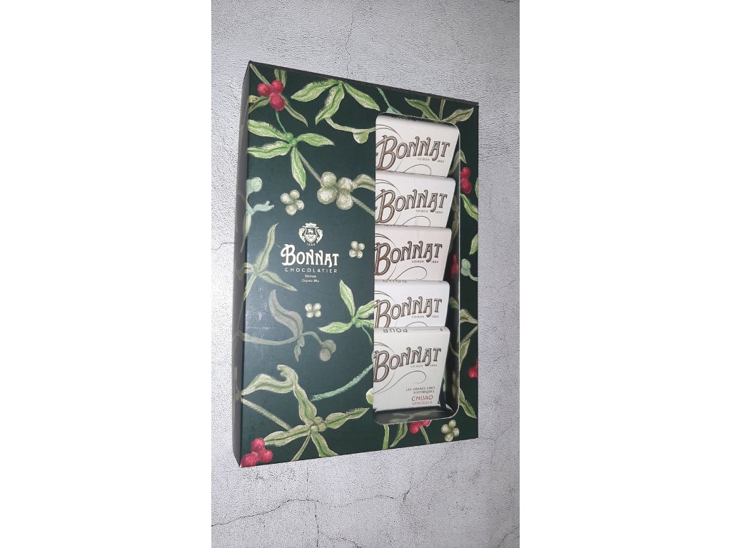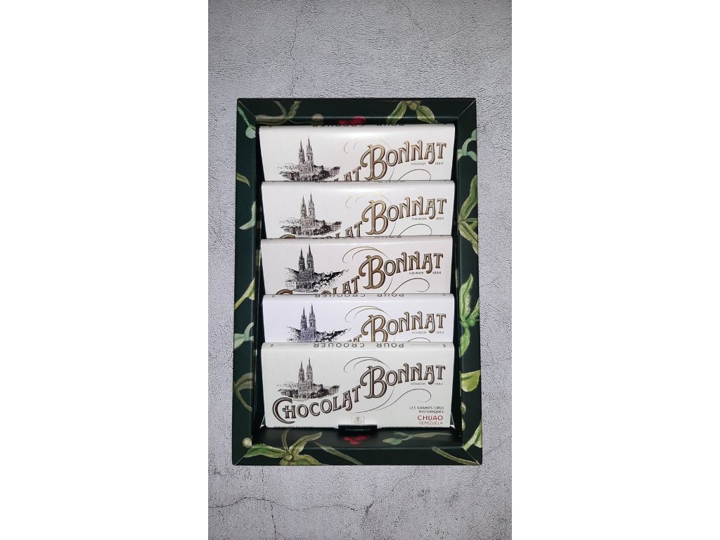 Pět hořkých čokolád "Grands Crus Historiques", vybrané Stéphanem Bonnatem, jsou tabulky z pravých "Terroirs" s jedinečnými a bezkonkurenčními vlastnostmi, bez jakéhokoli přidání jiných druhů kakaa. Tyto vlajkové produkty Maison Bonnat jsou oceněny nejvyššími mezinárodními oceněními. Čokolády pochází z kakaových bobů pěstovaných v Ekvádoru, Venezuele, na Pobřeží Slonoviny a na ostrově Trinidad. S ohledem na poctivou "plnotučnou" gramáž jeho čokolád jde o naprostý "best value-for-money" nákup single origin čokolád, které manufaktura Bonnat objevila světu a tento trend následují v posledních letech i další. Pětici doplňuje tabulka z vzácných a znalci oceňovaných kakaových bobů CHUAO. Tuto sadu musí ochutnat každý, kdo zatím nepochopil, že tu opravdovou a výjimečnou čokoládu nekoupí v supermarketu.