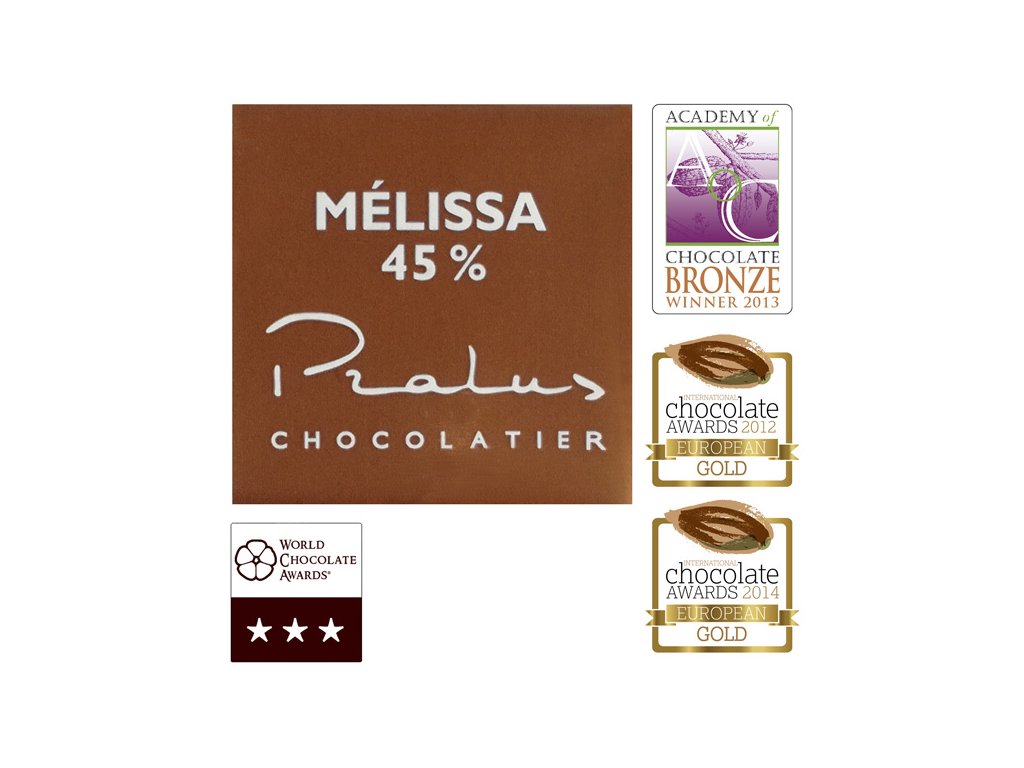- Francois Pralus Mélissa: zlatá medaile, International Chocolate Awards, 2012, kategorie „Milk plain origin bars – organic“ + bronzová medaile, Academy of Chocolate, 2013, kategorie „Best Milk Chocolate Bean-To-Bar“ + 3 hvězdy, World Chocolate Awards 2014, kategorie „Milk Chocolate or Milk Chocolate with Vanilla“ + zlatá medaile, International Chocolate Awards, 2012, kategorie „Milk plain origin bars“