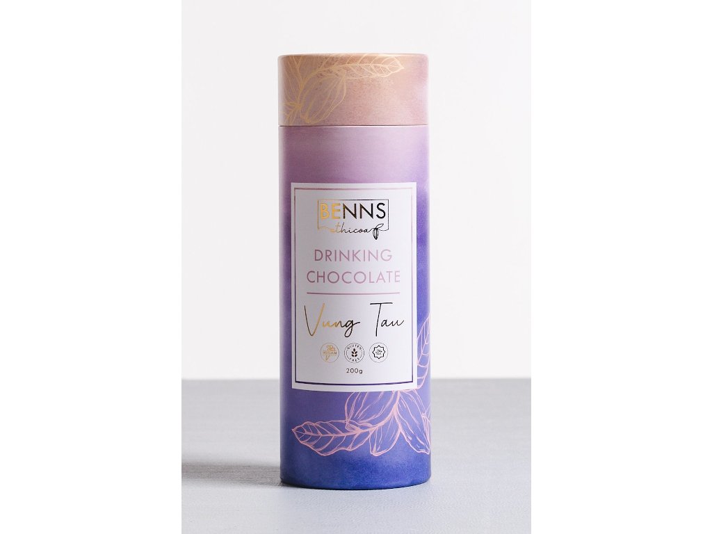 Horká čokoláda Benns Ethicoa Vung Tau je vyrobená z kakaa pěstovaného na stejnojmenné plantáži ve Vietnamu. Při pití této čokolády ucítíte chutě rybízu, meruňky a skořice, jejichž nádech boby získaly díky unikátnímu prostředí, ve kterém jsou pěstované. Jeden tubus Vám vystačí na několik hrnků bohaté horké čokolády :-).