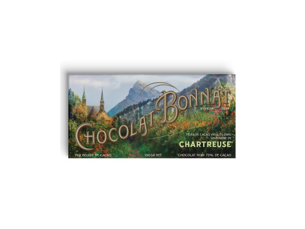Chartreuse je 75% hořká čokoláda, která vznikla díky unikátní spolupráci Maison Bonnat a Chartreuse – partnerství trvajícímu více než 150 let. Tato čokoláda je vyrobena z pečlivě vybraných kakaových bobů, jež nesou nádech historie a jemné vůně legendárního francouzského bylinného likéru Chartreuse. Boby absorbovaly dlouhé měsíce kořeněné aroma likéru ve stoletém sudu, který je uložen hluboko v historických sklepích ve Voironu a ve kterém zrály. Následně z ní vyrobili čokoládu, která voní a chutná opravdu unikátně.