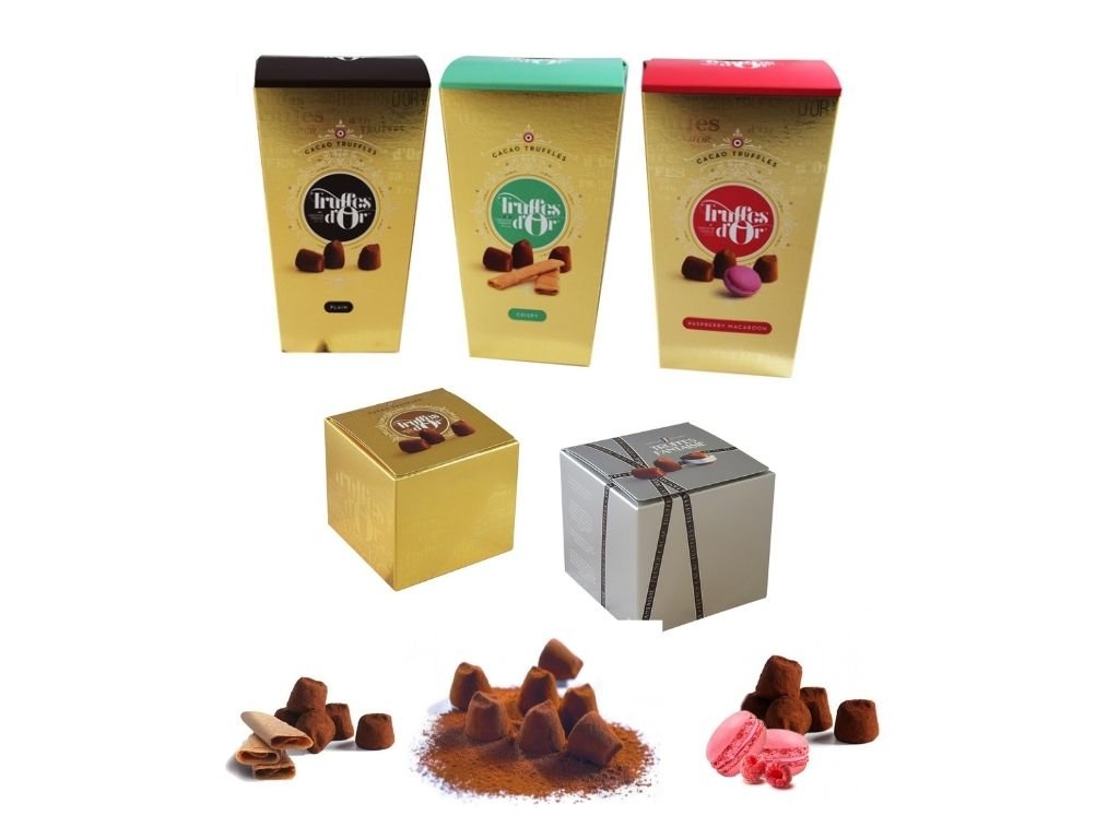 Kromě tradičních kakaových a čokoládových lanýžů tu máme pro Vás pestrou nabídku lanýžů velmi kreativně dochucených: s brandy Marc de Champagne, s likérem Cointreau, s mořskou solí Guérande, s křupavým slaným karamelem, s křupavými francouzskými palačinkami crêpe dentelle, s malinovými makronkami, s čokoládovými sušenkami cookies, s mandlovým praliné, s lískovými oříšky, s chilli, s kakaovými boby, s pistáciemi, a také svérázné perlivé lanýže.