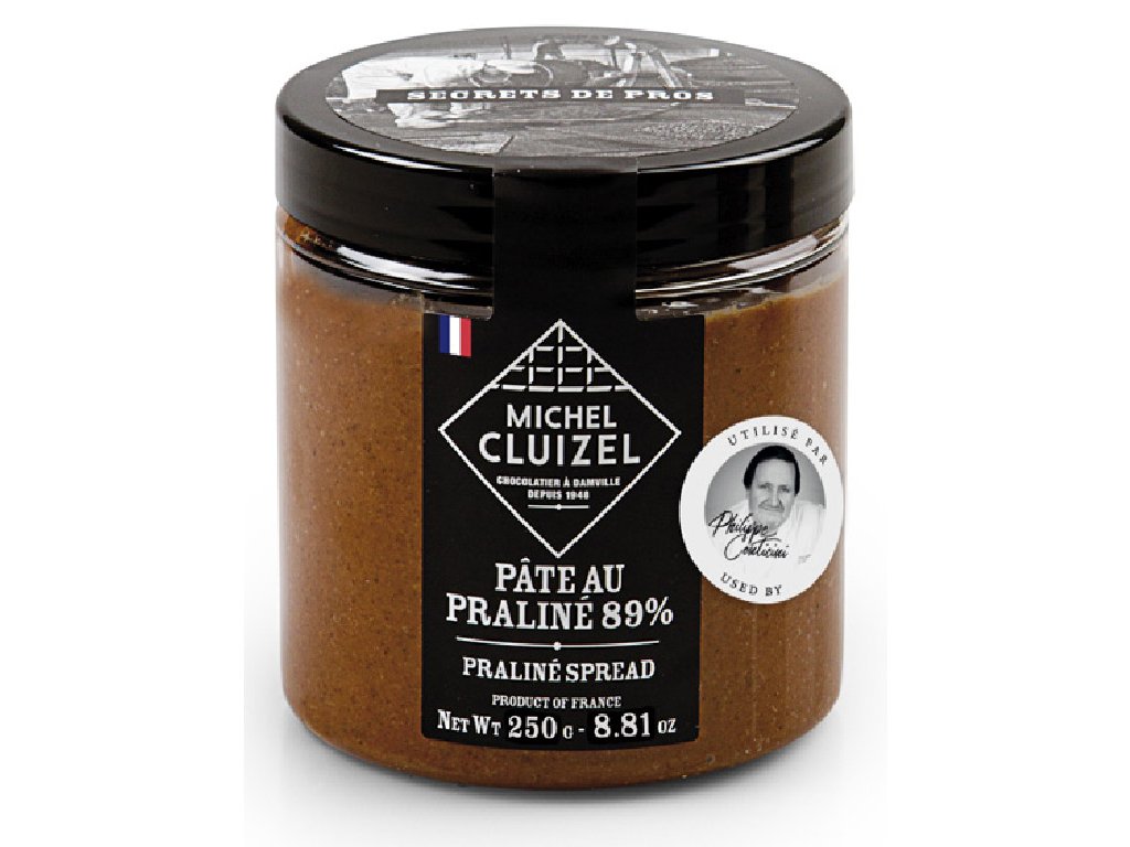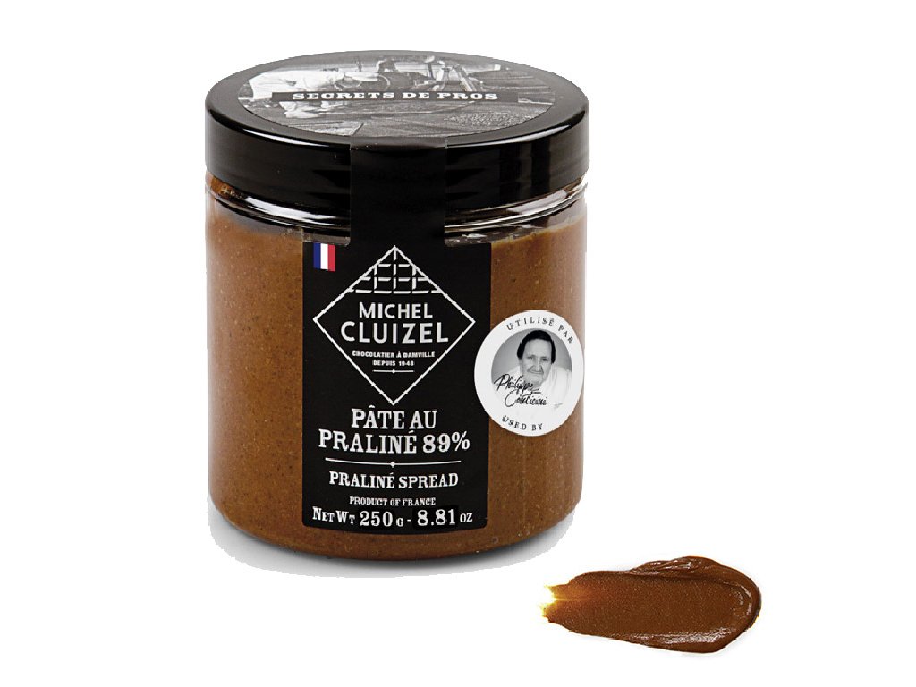 Neodolatelný krém – pasta z 89% praliné. Přináší vám plnou chuť lískových oříšků a sladkých mandlí, pražených na másle ve zkaramelizovaném třtinovém cukru. Ideální do vašich mistrovských cukrářských pochoutek i na lžičku. Michel Cluizel vám v krému odhaluje tajemství jeho legendárních pralinek a dezertů (např. Paris-Brest), které si nyní můžete vyrobit i vy.