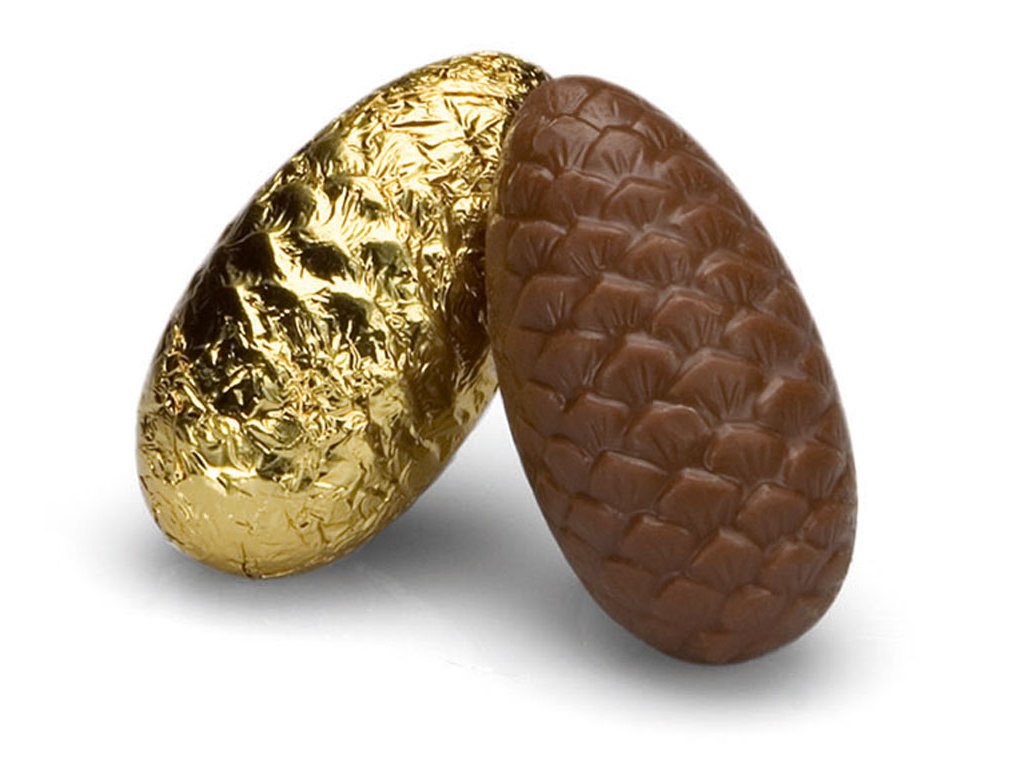 Šišky ve zlatém obalu z jemné mléčné čokolády a měkkého nugátového krému (gianduja) uvnitř, který se rozplývá na jazyku. Tomuto spojení neodolá žádný mlsný jazýček. Originální pralinky z dílny Michela Cluizela.