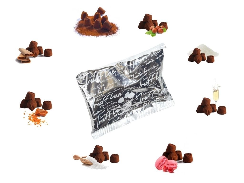 Kromě tradičních kakaových a čokoládových lanýžů tu máme pro Vás pestrou nabídku lanýžů velmi kreativně dochucených: s brandy Marc de Champagne, s likérem Cointreau, s mořskou solí Guérande, s křupavým slaným karamelem, s křupavými francouzskými palačinkami crêpe dentelle, s malinovými makronkami, s čokoládovými sušenkami cookies, s mandlovým praliné, s lískovými oříšky, s chilli, s kakaovými boby, s pistáciemi, a také svérázné perlivé lanýže.