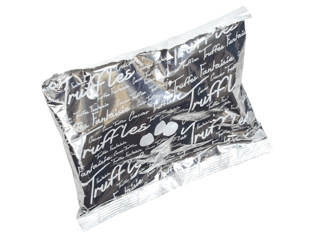 Delikátní francouzské kakaové lanýže (truffles) s lískovými oříšky v jednoduchém sáčku. Díky tomuto „sáčku na doplnění“ učiníte svoji, již dříve zakoupenou plechovku, „bezednou.“